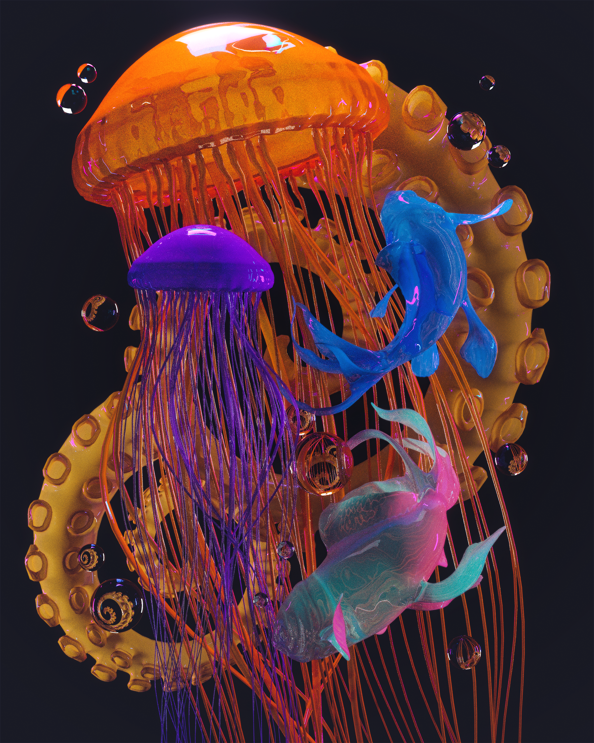 Below are some concept arts, materials and lighting explorations, done in Blender, Cinema 4D and Photoshop for retouching.